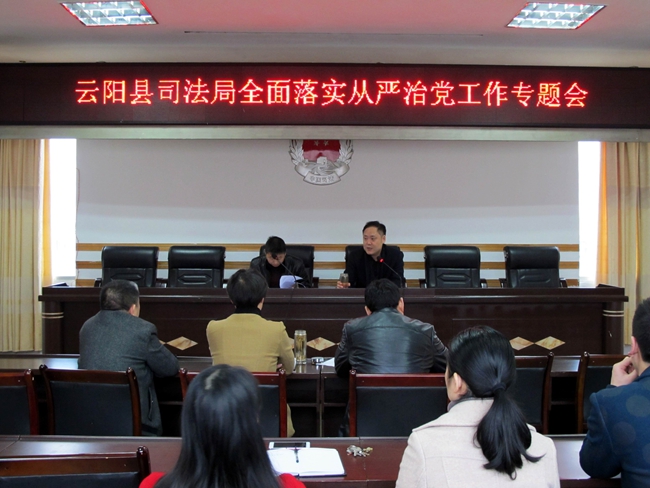 局党组书记陈兵同志要求全体干部职工:一是要强化“四个意识”。特别是核心意识、看齐意识,要用实际行动,结合司法行政工作,不折不扣把党的路线方针政策贯彻落实到位。二是要严明纪律规矩。要原原本本、认认真真地研读各项规定,吃准吃透精神,明白纪律界限,规范自己言行。三是要严肃党内政治生活。各支部每月要确定主题,扎实开展“党员固定日”活动和“三会一课”、组织生活会、党员民主评议会等。有关科室要加强对行业所属党支部的阵地建设以及党内政治生活开展情况的指导和检查,严禁走过场。四是要加强思想政治建设。各支部要着力在“两学一做”学习教育常态化上下功夫,以“四学四有”纪律作风建设年主题教育实践活动为载体,强化理论武装。五是要切实加强作风建设。进一步严肃工作纪律,全面整治“庸懒散慢”现象,对顶风违纪违规行为将严肃查处。六是要健全完善选人用人制度。在选拔任用中层干部和工作人员招录时,严把动议提名关、考核考察关和程序步骤关。七是要严格落实一岗双责。要求各班子成员在抓好业务工作的同时抓好分管领域的党风廉政建设工作,强化对分管科室人、财、物、事的监管责任。还要求层层签订党风廉政建设责任书,切实把全面从严治党工作任务落到实处。